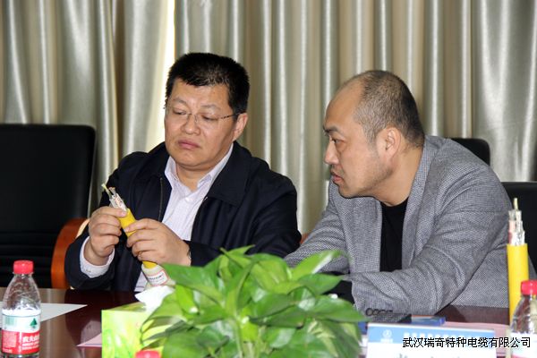 会议首先听取了航天瑞奇总经理周勇华的公司情况及发展概况介绍,与会领导观看了航天瑞奇宣传纪录片,听取了航天瑞奇总工程师罗福安对公司产品特点的技术介绍,双方领导就双方合作领域,特别是针对航天瑞奇开发的煤矿梭车用金属屏蔽橡套软电缆新产品开展了务实有效的技术交流。
