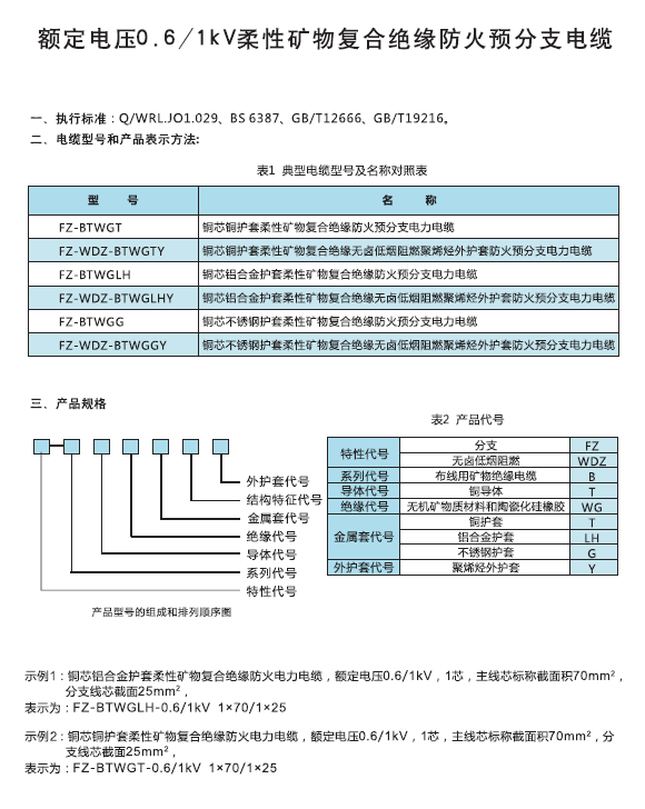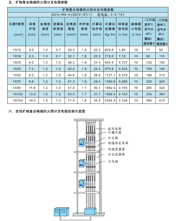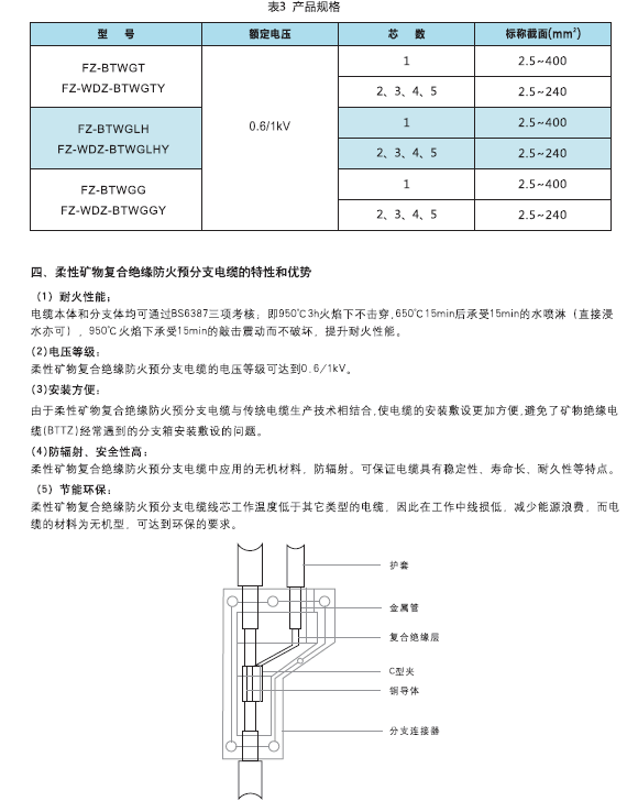 额定电压0.61kV柔性矿物复合绝缘防火预分支电缆