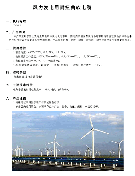 风力发电用耐扭曲软电缆